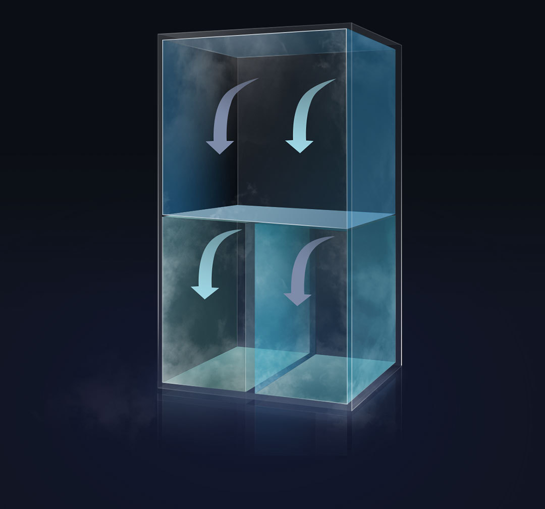 2. Consists of four chambers: two cooling and two freezing